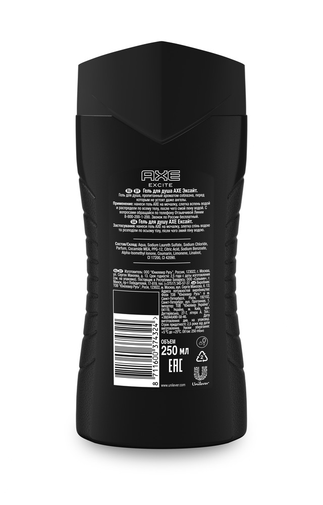 АXE борется со стереотипами, помогает мужчинам найти и показать свою индивидуальность. Мы заявляем: «Не важно, где ты живешь, сколько у тебя денег, какие у тебя взгляды на жизнь, не важно, что думают остальные - главное, что ты это ты. Будь оригинальной версией себя, а не копией кого-то». Вселенная AXE приветлива к гостям, смельчакам, которые решаются ступить на ее земли, но не всегда поддается упорному давлению. Для новых членов клуба AXE и тех, кто отправился в продолжительный отпуск за границы нашей звездной системы и ненароком заблудился, - путеводитель АХЕ, который поможет принять решение, какой AXE для тебя. AXE – это многообразие ароматов, которые нравятся именно вам. Аэрозольные мужские дезодоранты - для тех, кто ценит легкость и привык брать с собой в путешествие, на веселые вечеринки букет из удивительным ароматов, то есть настоящих романтиков, гелевые мужские антиперспиранты - для отчаянных сорвиголов, спортсменов, которые не признают компромиссов. Выбирай свой набор AXE. Будь готов к любой ситуации. Скажи НЕТ - белым следам на одежде, ощущению стянутости кожи. Только удивительная свежесть! В дополнение к лучшим мужским антиперспирантам - пенистые шампуни. Сколько ароматов - столько и оттенков, которые разбавляют ваш повседневный гардероб. «Девайсы» в арсенал секретного оружия обольщения. Гель для душа АXE Морозная мята. Придает интенсивное ощущение прохлады всему телу. Свежесть морозной мяты и имбиря. Охлаждает и заряжает энергией на весь день. Найди свою силу.
