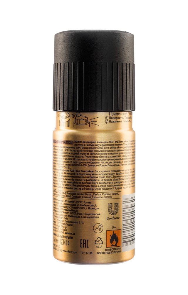 Способ употребления: Встряхните баллон, распыляйте 2-3 секунды на сухую и чистую кожу подмышек с расстояние 15 см от тела. Прекратите использование при появлении сыпи или раздражения на коже.